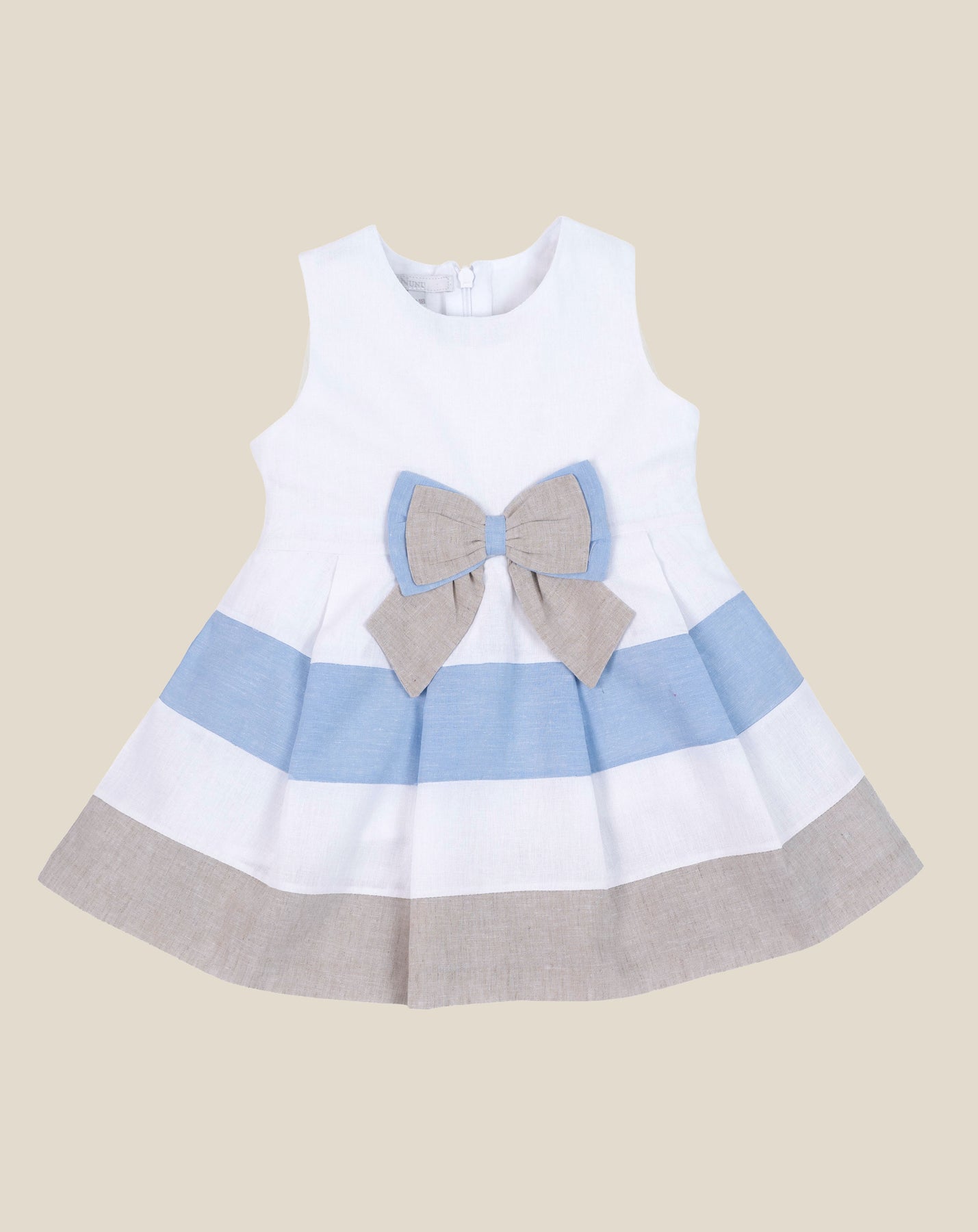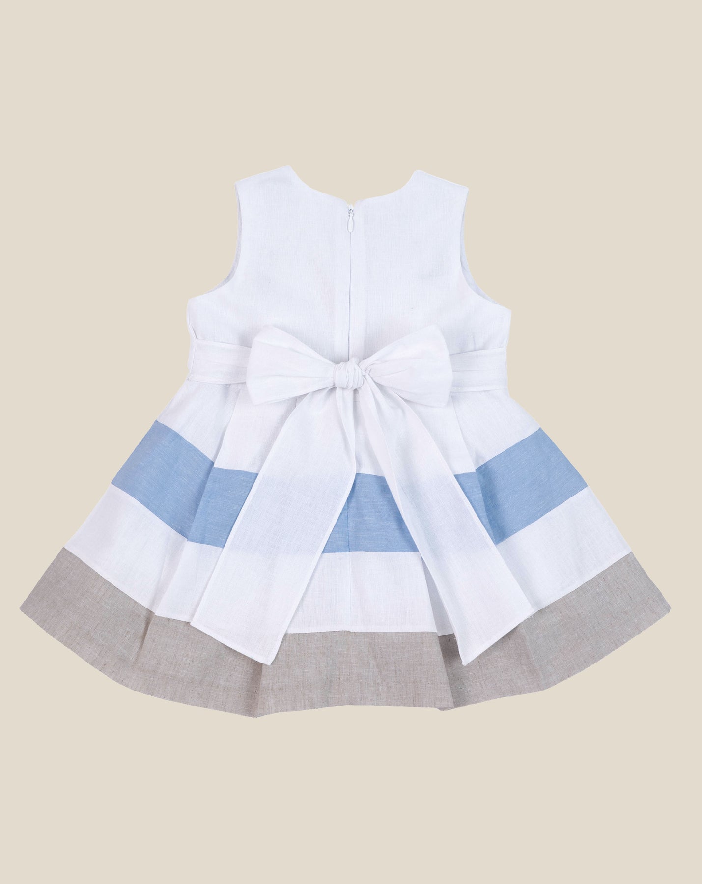 VESTIDO LINO FRANJAS Y LAZO